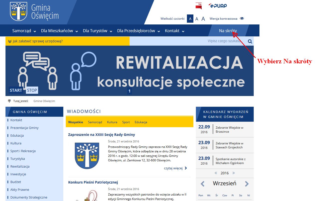 Wejdź na stronę Gminy Oświęcim tj.  www.gminaoswiecim.pl i/lub gdy już jesteś