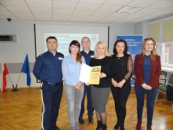 24 marca 2017 r. pedagog szkolny, mgr Anna Kotara z Gimnazjum Gminnego Nr 2 im. KEN w Zaborzu, odebrała z rąk Naczelnika Komendy Powiatowej Policji