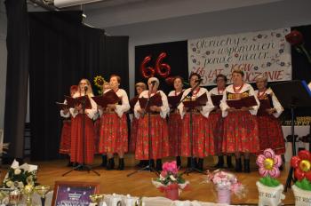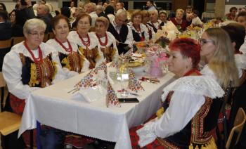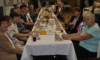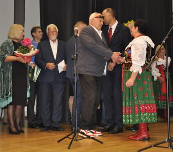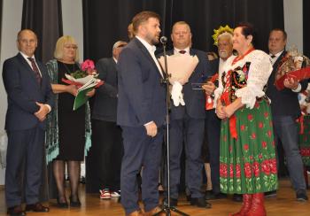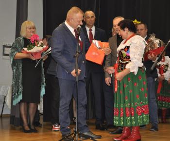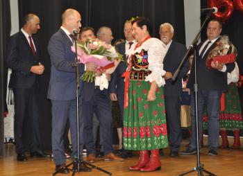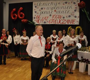 Główne uroczystości odbyły się w grojeckim Domu Ludowym, gdzie pojawili się zaproszeni goście. Życzenia i gratulacje dla wszystkich członków zespołu „Grojczanie” oraz Pań z KGW na ręce przewodniczącej KGW - Marii Śliwki złożył Wójt Gminy Oświęcim Mirosław Smolarek, który na jubileuszowych obchodach pojawił się wraz z małżonką Beatą.