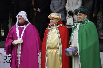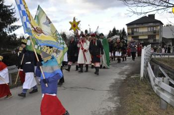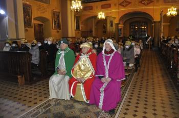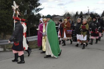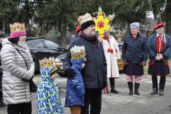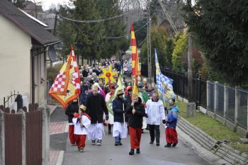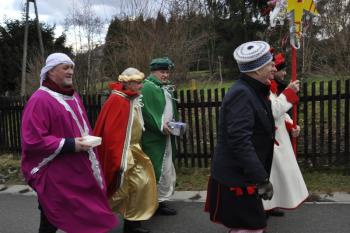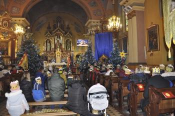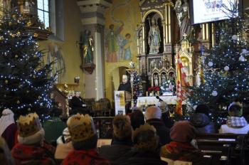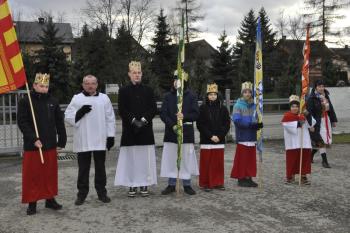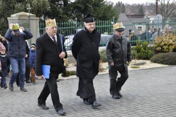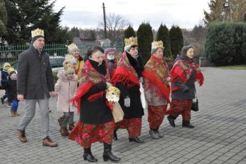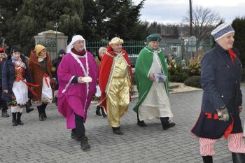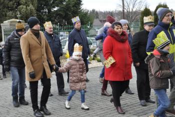 Kacper, Melchior i Baltazar poprowadzili orszak parafian spod szopki urządzonej przy remizie do kościoła św. Michała Archanioła. W świątyni wierni obejrzeli filmowy zapis jasełek przygotowanych przez przedszkolaki, a do wspólnego kolędowania zaprosił zespół Bratkowie z Monowic.