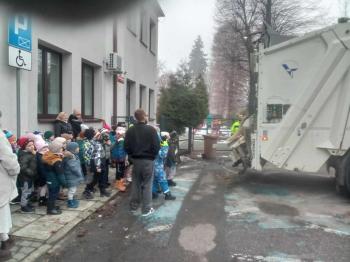 W dniu 1 grudnia w naszym przedszkolu zostały zrealizowane zajęcia, z zakresu poprawnej segregacji w formie prelekcji, prowadzonej przez pracownika Zakładu Usług Komunalnych Sp. z o.o. w Oświęcimiu. Po zakończeniu części teoretycznej, dalsza część prelekcji odbywała się na zewnątrz, a dzieci miały okazje z bliska zobaczyć i zapoznać się z działaniem śmieciarki. Chętni mieli szanse usiąść za kierownicą tego pojazdu.