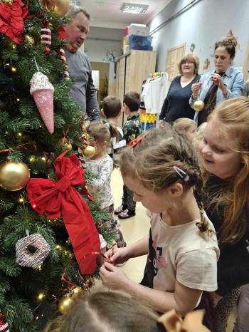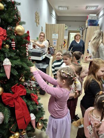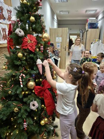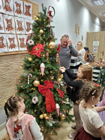 Serdecznie dziękujemy Panu z Centrum Ogrodniczego „Sajdak” za przekazanie pięknej choinki do naszego przedszkola oraz za wspólne jej ubieranie razem z dziećmi. Dzięki Pańskiej uprzejmości i zaangażowaniu mogliśmy przeżyć radosne, przedświąteczne chwile, a udekorowana choinka przepięknie zdobi nasz korytarz, wprowadzając wszystkich w świąteczny nastrój. Dziękujemy za życzliwość, czas i wsparcie naszej przedszkolnej społeczności!