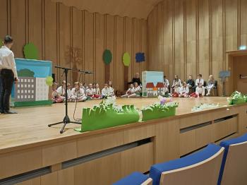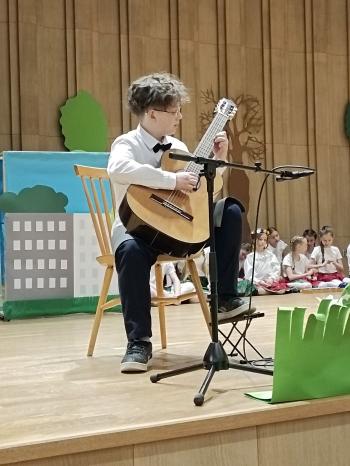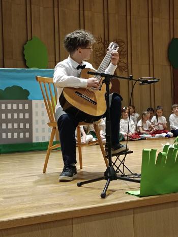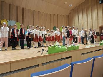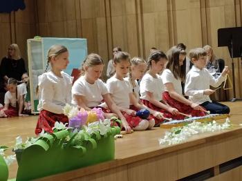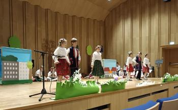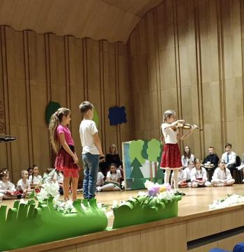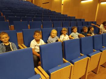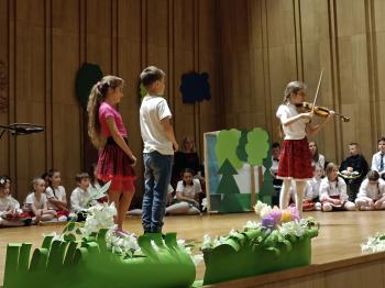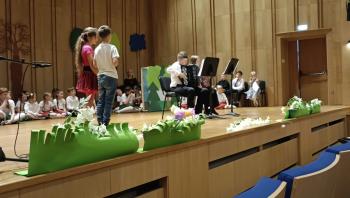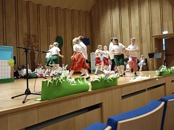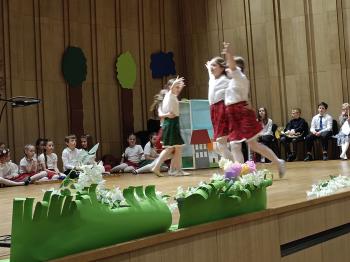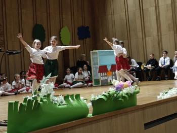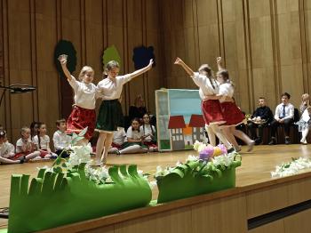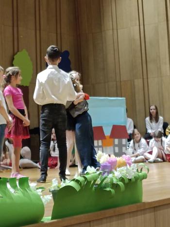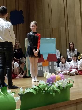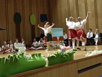 W dniu 13 maja grupa „Żabek” pojechała do Szkoły Muzycznej w Oświęcimiu na spektakl „O zagubionej baletniczce”. Dziewczynka Marysia wraz z przyjaciółmi wyruszyła w podróż pociągiem, aby odnaleźć baletniczkę. Po drodze poznała wiele ciekawych osób grających na różnych instrumentach takich jak: skrzypce, akordeon, ksylofon, cymbałki, waltornia i gitara, oraz tańce pasujące do danej melodii: polka lubelska, cebula, oberek, kujawiak, polonez. Muzyka ta bardzo spodobała się zagubionej baletnicy, która postanowiła powrócić. „Żabki” również powróciły do przedszkola w bardzo dobrych humorach. |