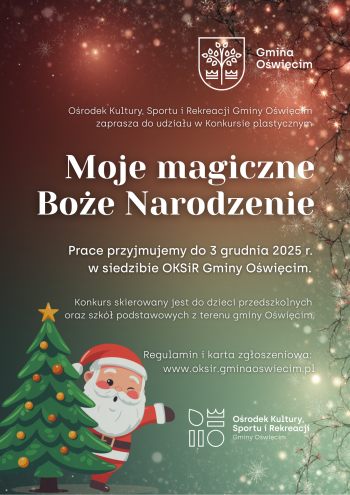 Prace konkursowe wraz z kartami zgłoszeniowymi przyjmujemy do 3 grudnia 2025 r., w siedzibie OKSiR Gminy Oświęcim (Brzezinka, ul. Sportowa 9).