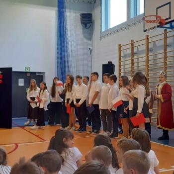 29 kwietnia w naszej szkole odbyła się uroczysta akademia z okazji świąt majowych – Święta Pracy, Dnia Flagi Rzeczypospolitej Polskiej oraz rocznicy uchwalenia Konstytucji 3 Maja.
